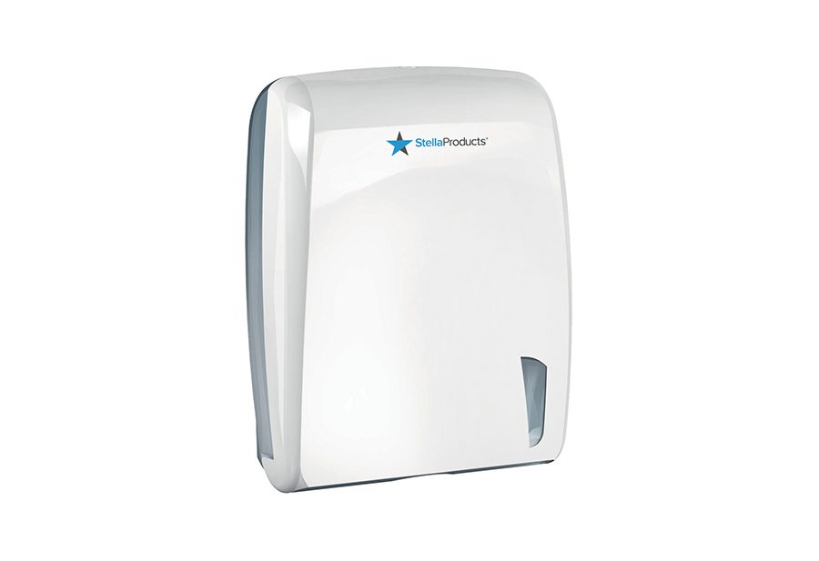 Son design sobre blanc/transparent permet de contrôler rapidement le niveau de consommable tout en s’intégrant discrètement à tout environnement professionnel (toilettes, cuisine, ateliers, bureaux).