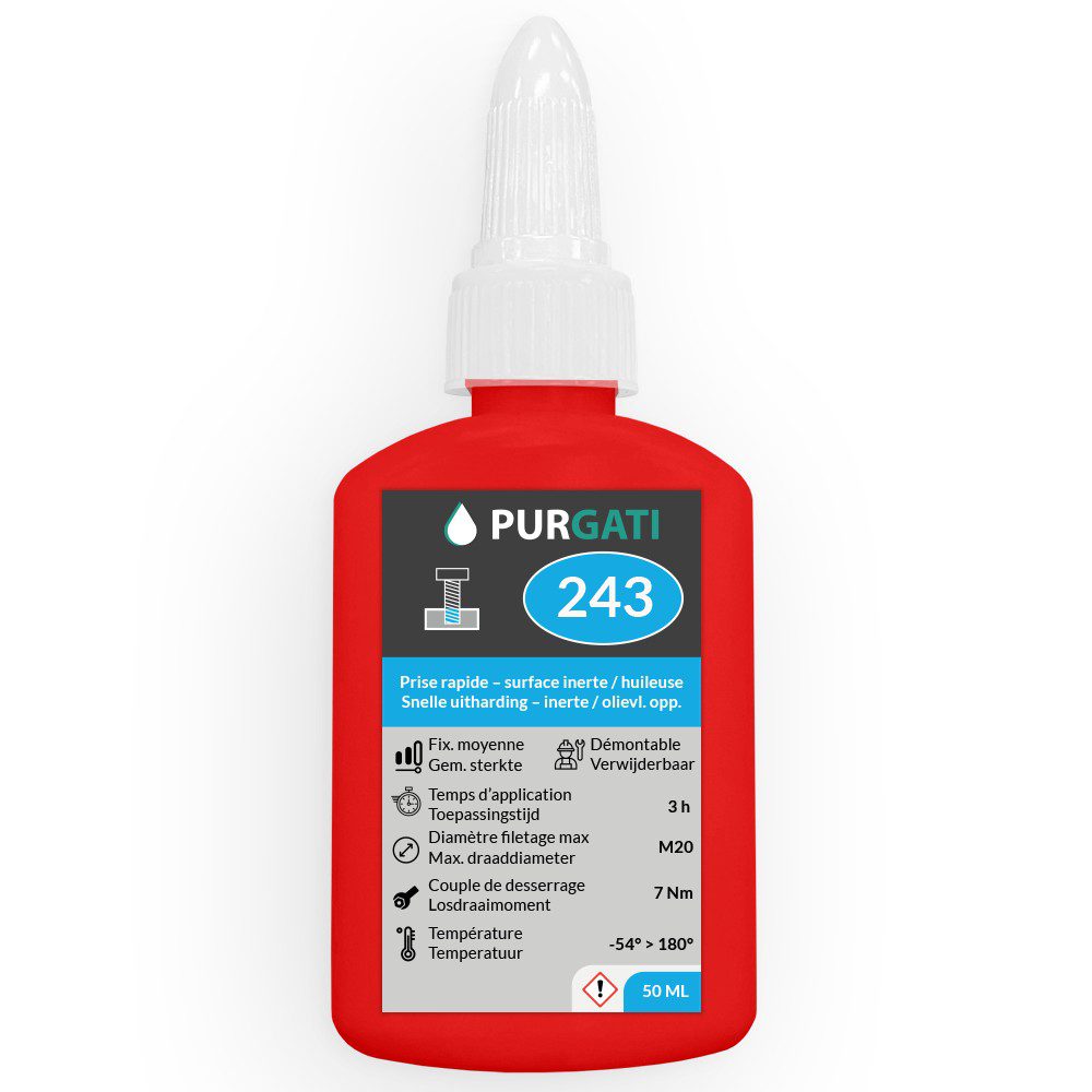 Produit de freinage de filetages de qualité moyenne- conditionné dans un flacon pratique de 50 ml. Offrez une protection fiable à vos filetages tout en simplifiant le processus d’application.
